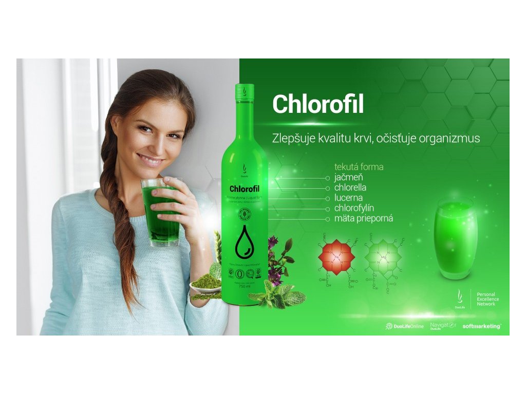 Jedinečné spojenie tekutého chlorofylu z lucerny siatej, jačmeňa a pšeničných klíčkov poskytuje organizmu účinnú očistu, podporu imunity a zlepšenie okysličenia buniek. Pravidelná konzumácia prispieva k lepšej vitalite a obnove zásaditej rovnováhy. Prípravok napomáha neutralizácii kyslého prostredia v tele a má priaznivý vplyv na prirodzenú detoxikáciu organizmu. Obsahuje prírodné extrakty s vysokým podielom antioxidantov, ktoré podporujú zdravie a odolnosť voči vonkajším vplyvom. Tekutá forma zabezpečuje rýchlu vstrebateľnosť a jednoduché používanie. Vďaka obsahu chlorofylínu efektívne prispieva k sviežemu dychu. Výrobok neobsahuje žiadne umelé farbivá ani konzervanty.