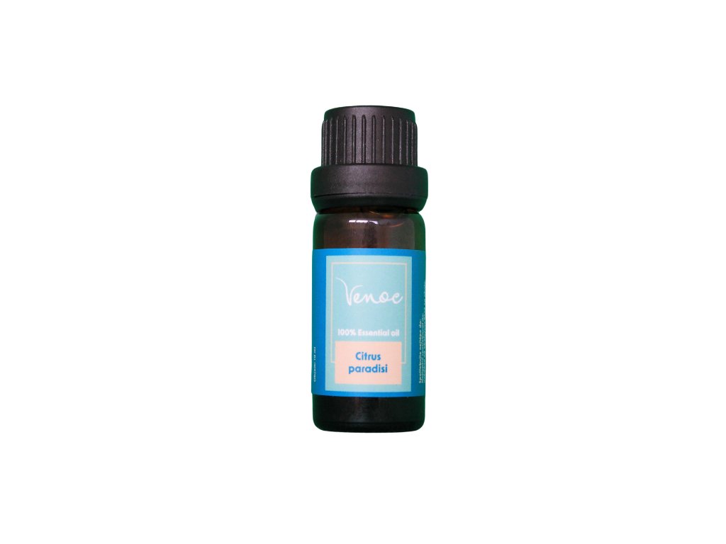 Esenciálny olej Grepfruit Venoc 10 ml je prírodný olej lisovaný zo šupiek grapefruitu (Citrus Paradisi). Má sviežu, citrusovú vôňu, ktorá osviežuje myseľ, zmierňuje stres a prináša pocit pohody. Okrem toho podporuje metabolizmus a pomáha pri duševnej aj fyzickej únave. Je obľúbený v aromaterapii pre svoje očistné a povzbudzujúce účinky.