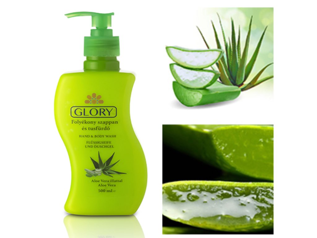 GLORY tekuté mydlo a sprchový gél s vôňou aloe Vera 500 ml: Ph-neutrálne tekuté mydlo a sprchový gél s obsahom glycerínu, ktorý zanecháva pokožku jemnú a zamatovú s aloe Vera vôňou, vás bude rozmaznávať pri každodennom použití.