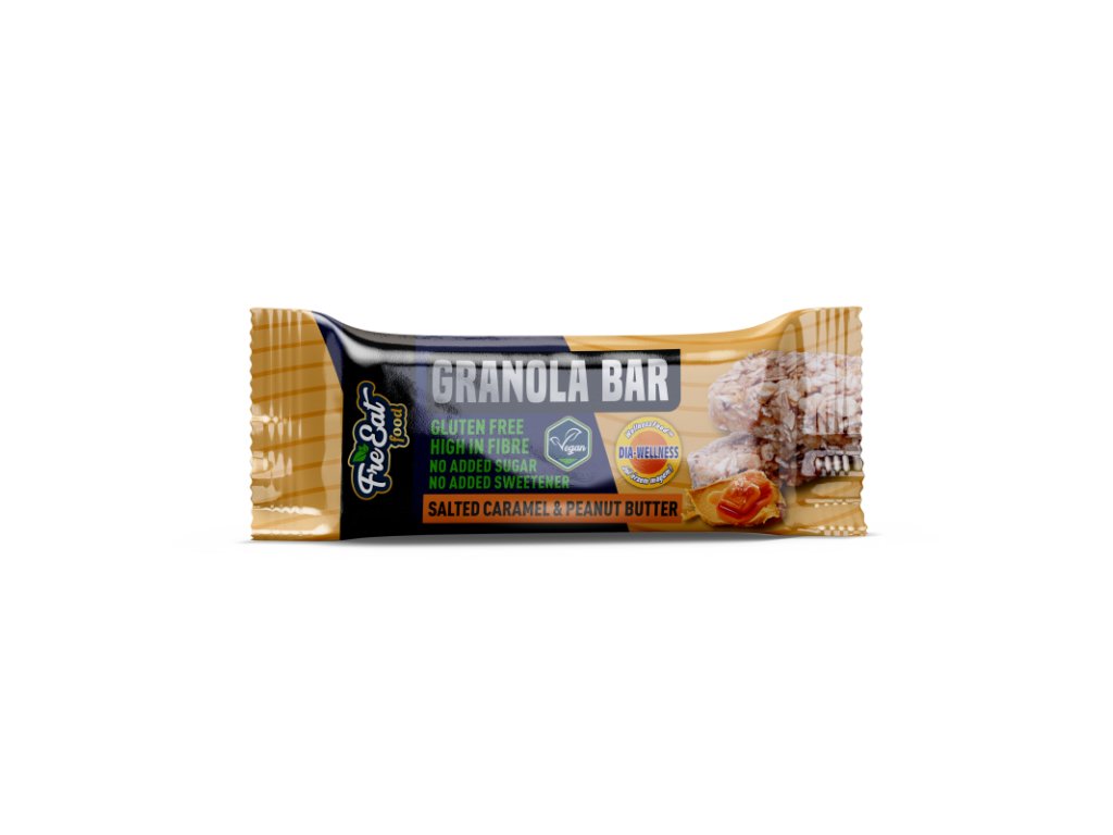 Zloženie: Granola: (40 %) (bezlepkové ovsené vločky, datľový sirup, kokosový olej), datľová pasta, diétna vláknina: inulínový prípravok (inulínový sirup (artičok), pitná voda, pektín, arašidový krém (10 %), arašidy, kokosový olej, jedlá soľ (0,8 %), karamelová aróma (0,3 %), antioxidant: (zmes tokofer beta, gamaol a delfa, beta).