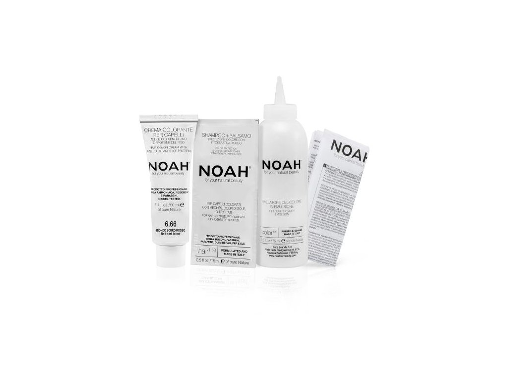 Permanentná krémová farba na vlasy Noah dodá vašim vlasom intenzívny červeno-tmavoblond odtieň už po prvom použití. Je obohatená o ryžové proteíny a ľanový olej z ekologického poľnohospodárstva, ktoré vlasom poskytujú výživu, hydratáciu a prirodzený lesk. Zloženie je šetrné k pokožke hlavy a vlasovej štruktúre – neobsahuje amoniak, parabény ani rezorcinol, a je tak ideálnou voľbou aj pre citlivú pokožku.