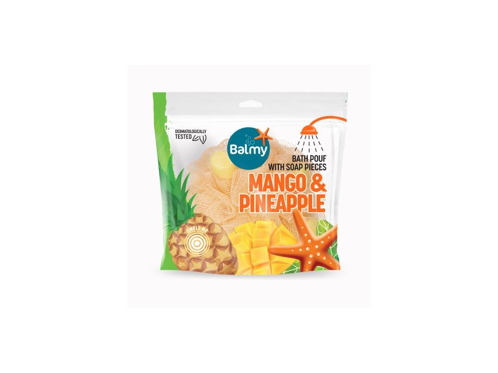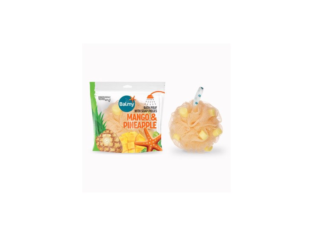Kúpeľňová špongia s kúskami mangovo-ananásového mydla Balmy 23g