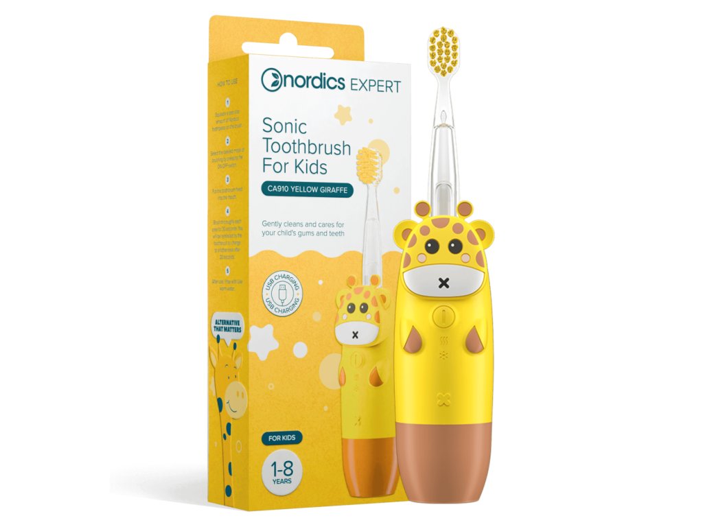 Sonická detská zubná kefka Žltá žirafa 1-8 rokov Nordics Oral Care