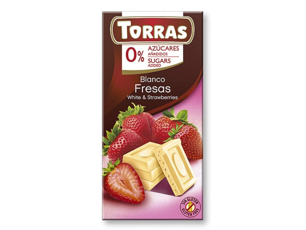 Torras Bezlepková biela čokoláda s kúskami jahôd bez pridaného cukru, so sladidlom (75g)